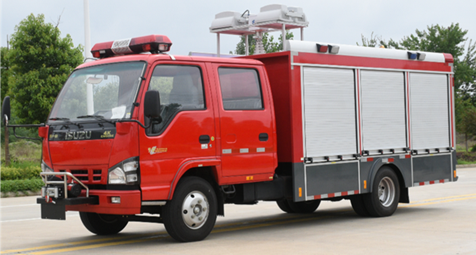 器材箱內(nèi)安裝有大功率發(fā)電組,并可按需搭建各種消防搶險(xiǎn)救援用器材框架,拖板