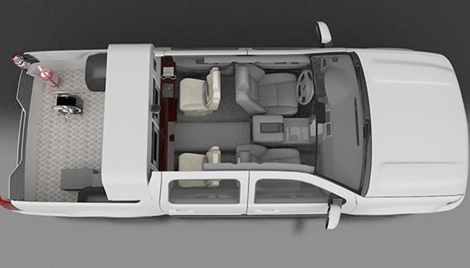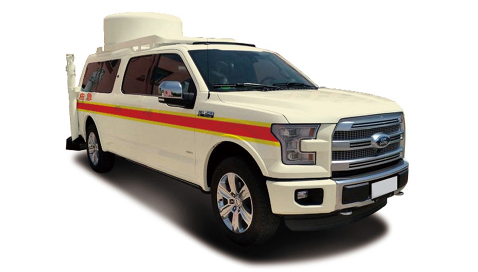 該通信前突車采用進口福特F150 LTD四驅車型改制,V6渦輪增壓發動機,動力強勁,底盤離地間隙大、越野性能強。