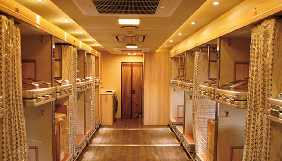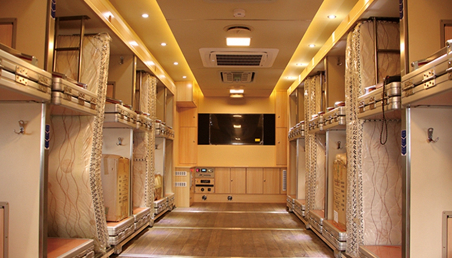 內(nèi)部鋪位設(shè)計結(jié)構(gòu)合理,空間利用率高。床鋪前設(shè)置床頭柜、手機充電接口、床頭燈,宿營區(qū)采用頂置冷暖空調(diào)系統(tǒng)和燃油加熱器,保證了宿營舒適性。
