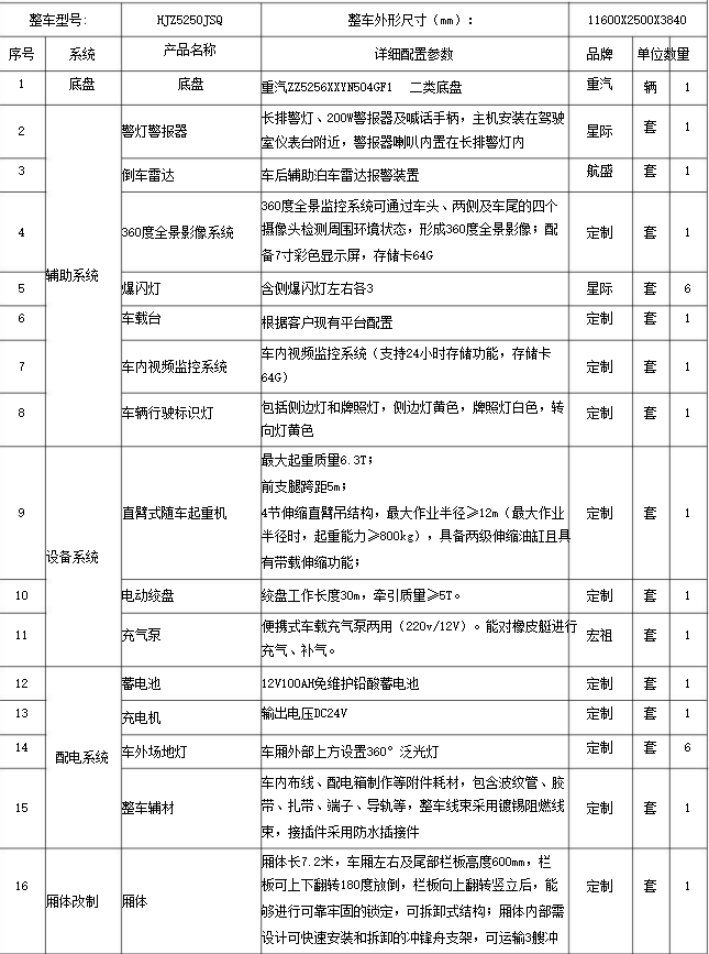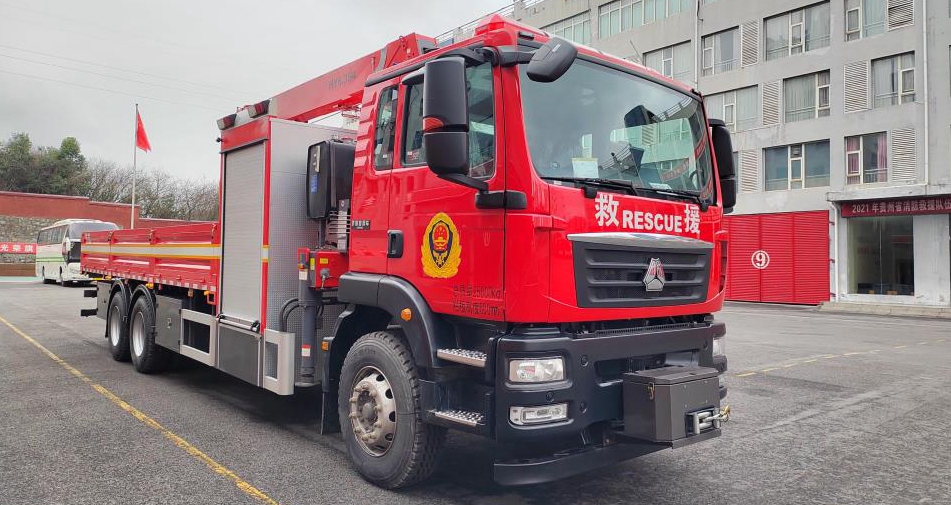 舟船運輸車主要由二類底盤、隨車起重機、廂體、舟船固定設施、電氣系統等組成,為 及時快速運輸沖鋒舟提供作業保障