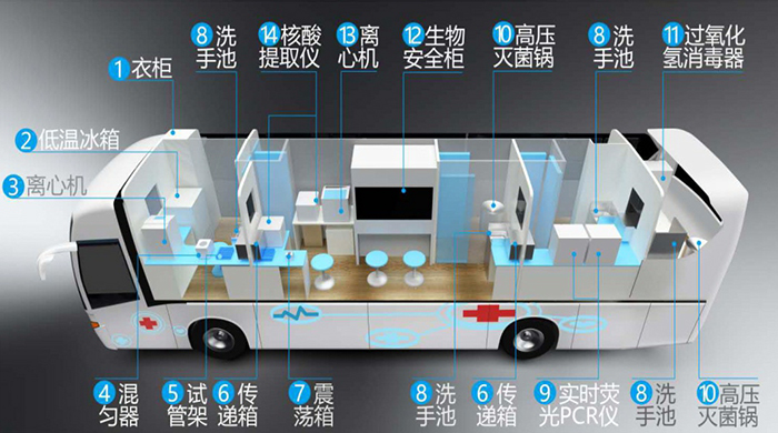 車內的實驗臺柜和設備采?取防震防腐和抗感染措施,安全性能更?。