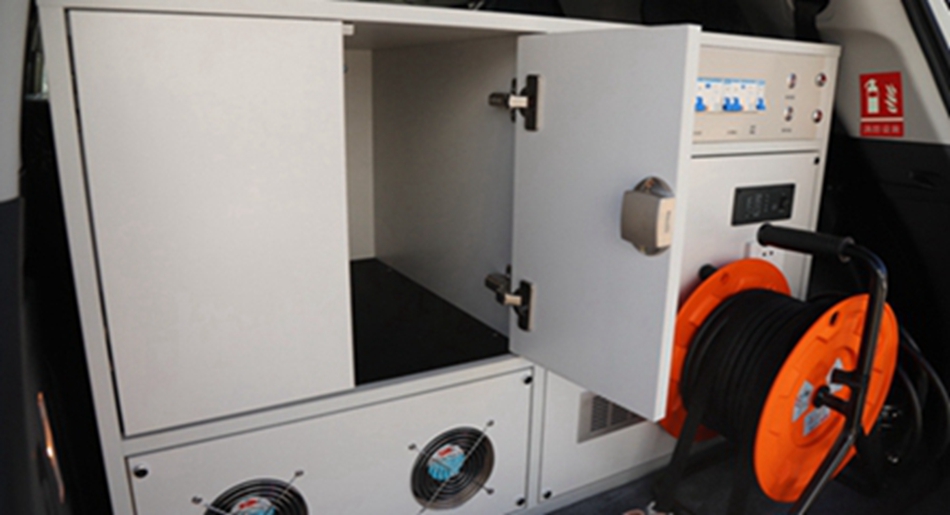 配置有配電集中控制箱 、充逆變一體機、服務(wù)電瓶、接地系統(tǒng)、電纜盤、車內(nèi)電源插座 、車外電源防水接口 、操作臺 、紫外消毒燈、滅火器設(shè)施。