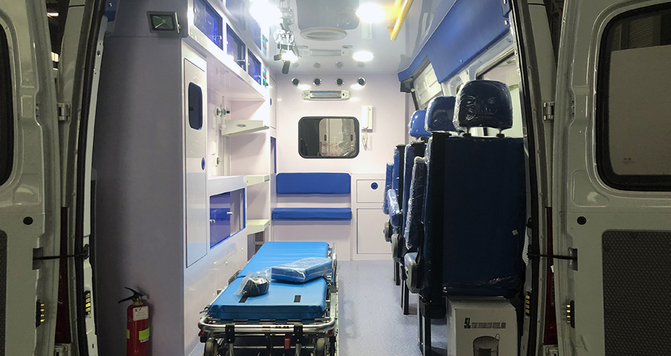 內(nèi)飾均采用高分子環(huán)保材料,易清潔、消毒,有效保障車內(nèi)衛(wèi)生條件,提升病人運(yùn)送過(guò)程中的安全性 ,同時(shí)地板采用重量輕、環(huán)保且可二次利用的裝飾材料,便于醫(yī)護(hù)人員的清潔、整理。